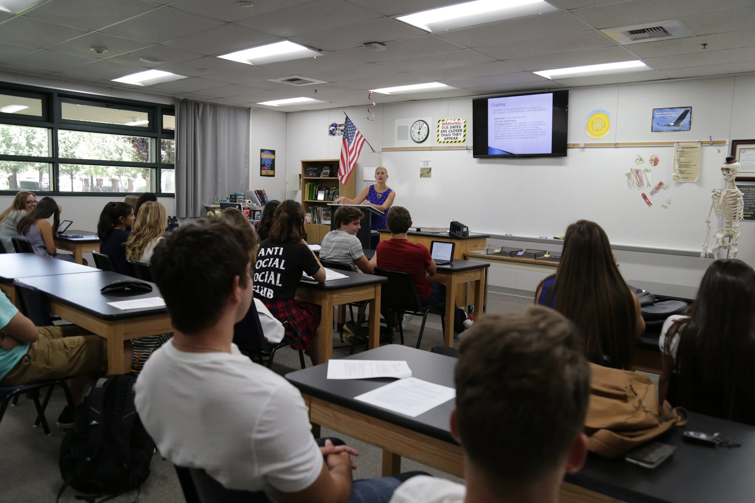 Our classrooms are places where godly instructors, gifted at teaching and in love with their subjects, converge with motivated young minds from committed families. Departments work together in a collaborative fashion producing an effective professional learning community for academic growth. More than half the faculty has advanced degrees and all of our AP teachers have been trained and certified by the College Board. Our teachers are ACSI certified and are required to complete 20 hours of continuing educational units every school year for professional development.